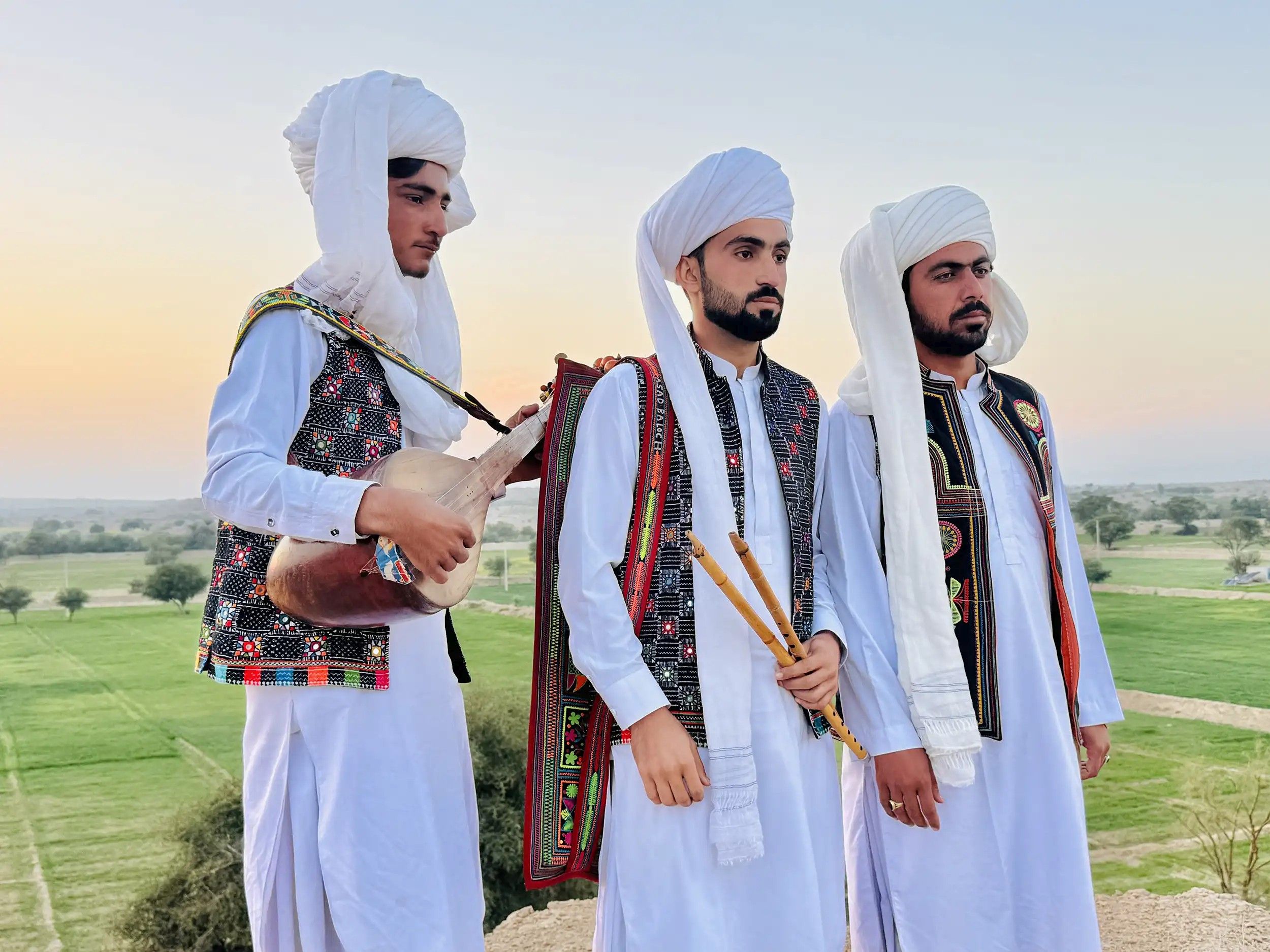 Asad - Algoza (Doppelflöte) Ameen – Dambiro (Tambura) Haider Ali – Nar-Sur Kehlkopf-Gesang